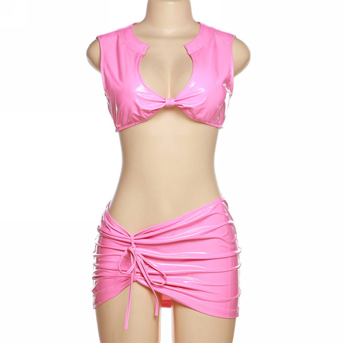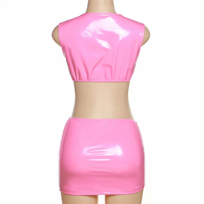 (Real Image)2023 Styles Women Sexy&Fashion Spring&Summer TikTok&Instagram Styles PU Two Piece DressSKU: #CF77182-1