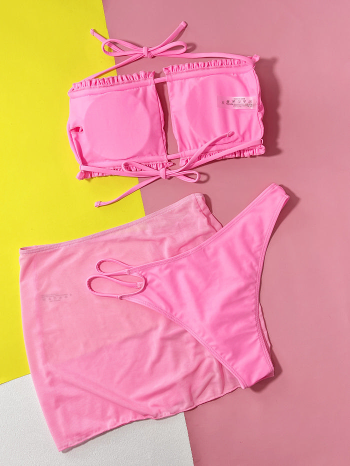 (Real Image)2023 Styles Women Sexy&Fashion Spring&Summer TikTok&Instagram Styles Pink 3 Piece SwimsuitSKU: #CF55191-1