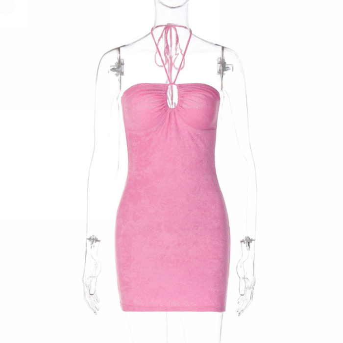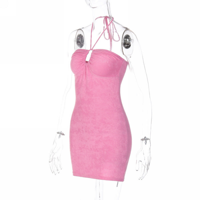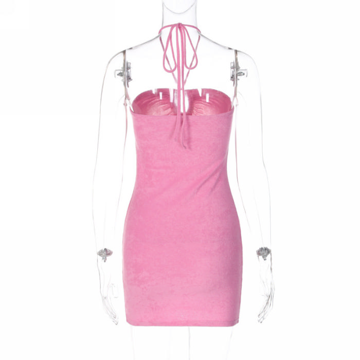 (Real Image)2023 Styles Women Sexy&Fashion Spring&Summer TikTok&Instagram Styles Pink Halter Mini DressSKU: #CF88105-1