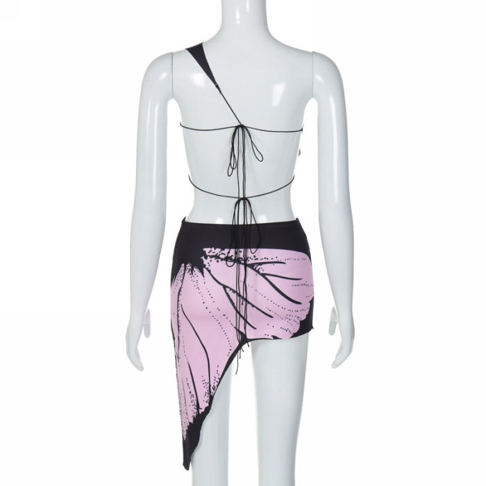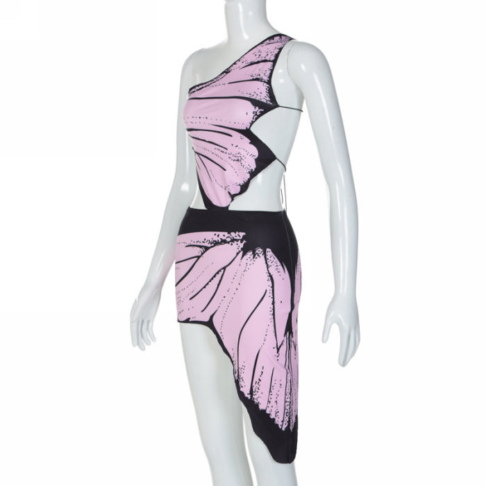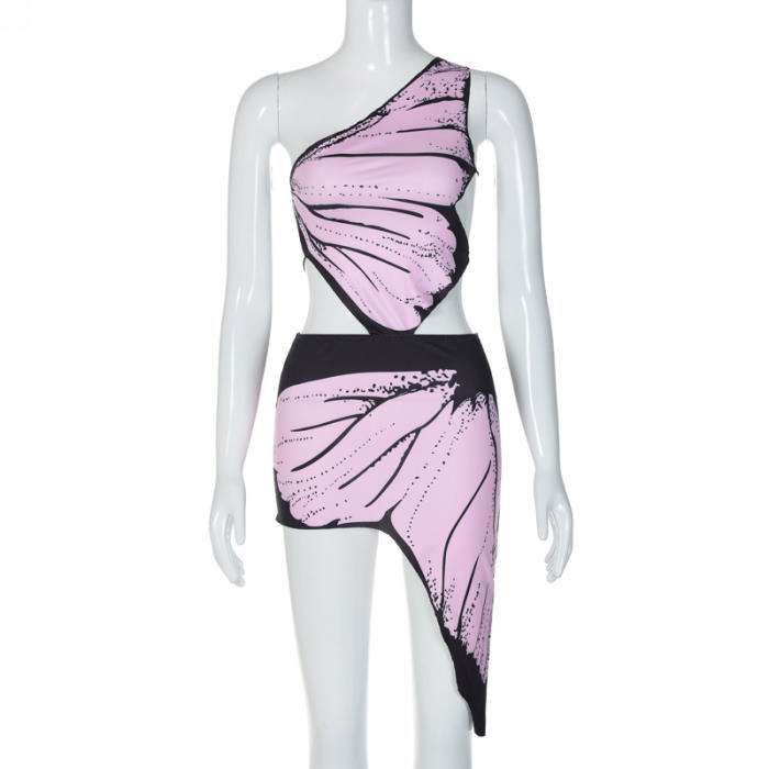 (Real Image)2023 Styles Women Sexy&Fashion Spring&Summer TikTok&Instagram Styles Pink Print Irregular Backless Two Piece DressSKU: #CF22969-1