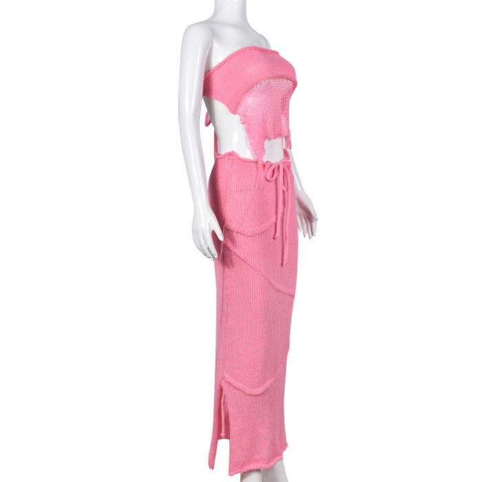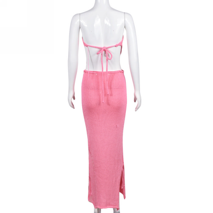 (Real Image)2023 Styles Women Sexy&Fashion Spring&Summer TikTok&Instagram Styles Pink Sweater Maxi DressSKU: #CF59637-1