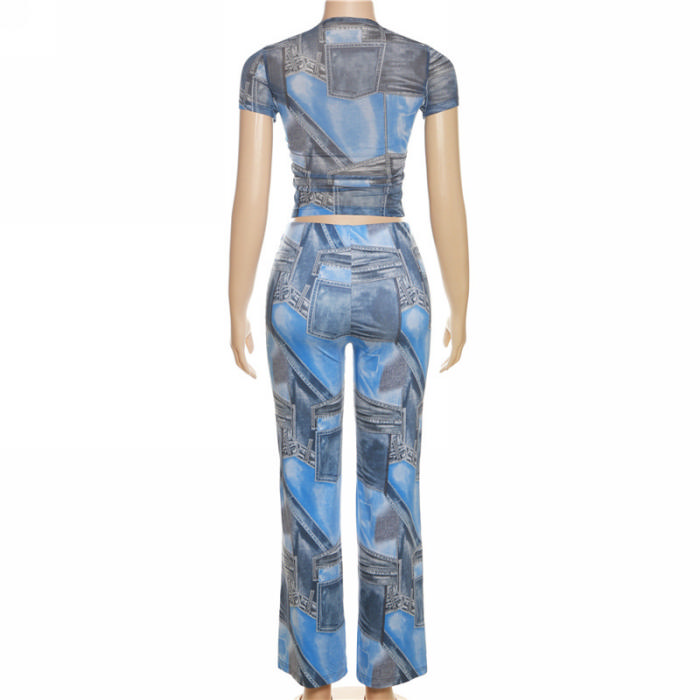 (Real Image)2023 Styles Women Sexy&Fashion Spring&Summer TikTok&Instagram Styles Pirnt Blue Two Piece SuitSKU: #CF83128-1