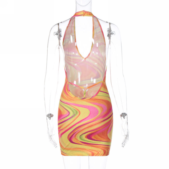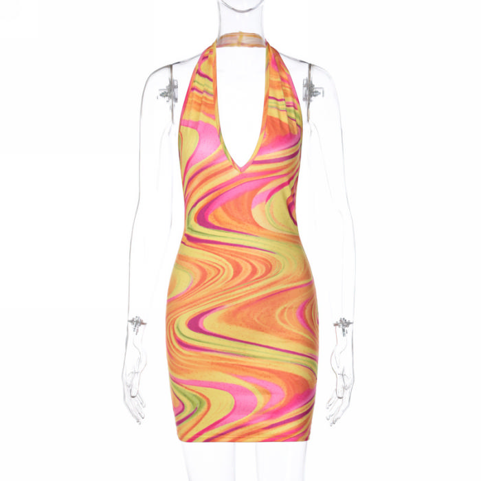 (Real Image)2023 Styles Women Sexy&Fashion Spring&Summer TikTok&Instagram Styles Print Backless Club DressSKU: #CF88019-1
