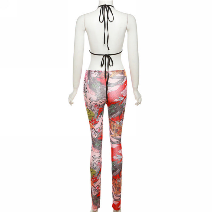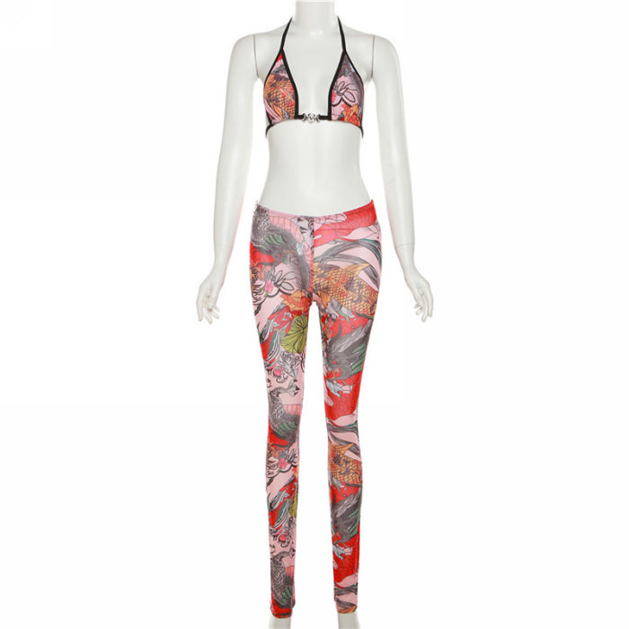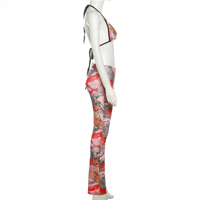 (Real Image)2023 Styles Women Sexy&Fashion Spring&Summer TikTok&Instagram Styles Print Bar+Long Pants Two Piece SuitSKU: #CF77422-1