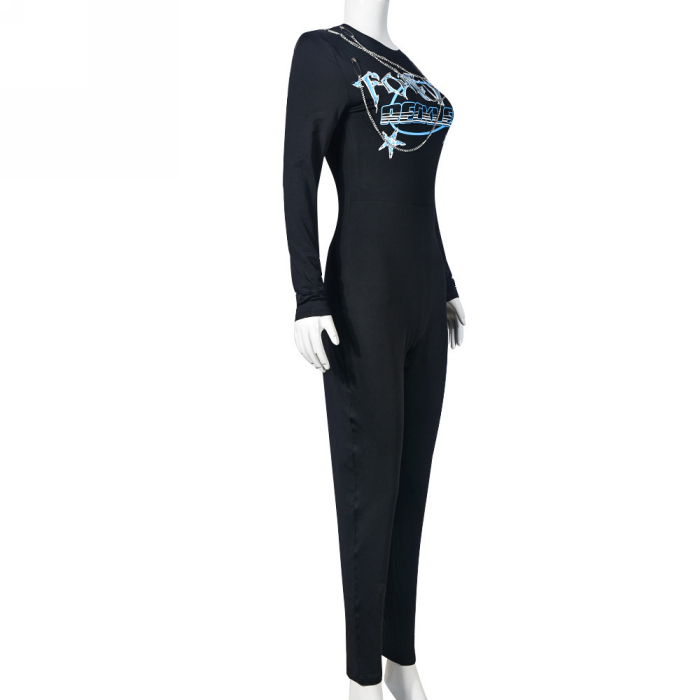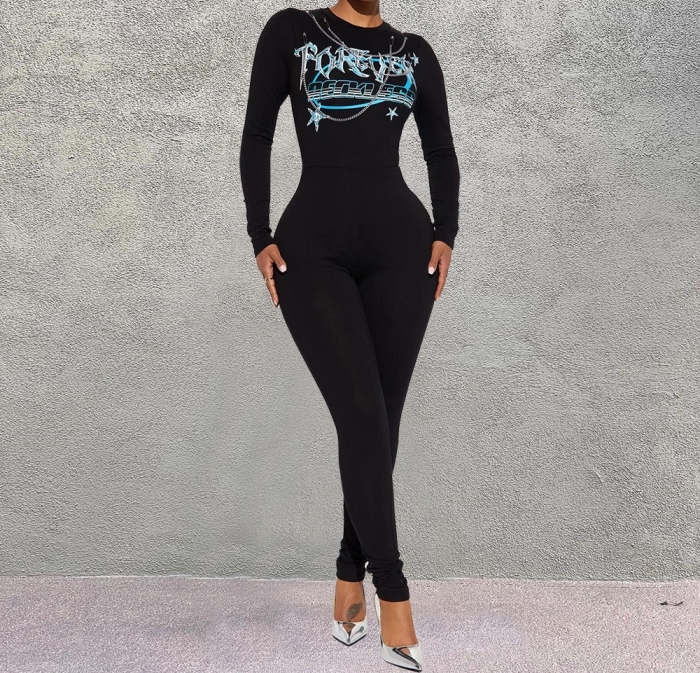 (Real Image)2023 Styles Women Sexy&Fashion Spring&Summer TikTok&Instagram Styles Print Black JumpsuitSKU: #CF59691-1