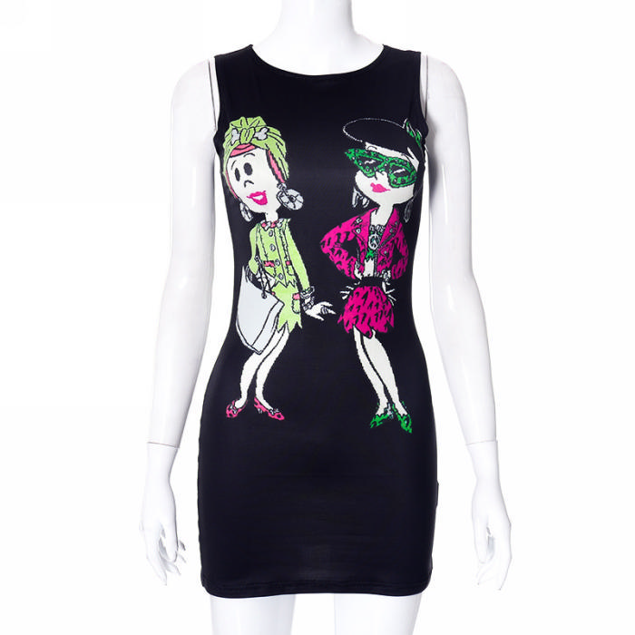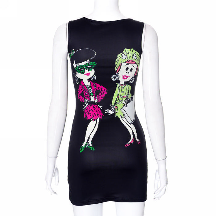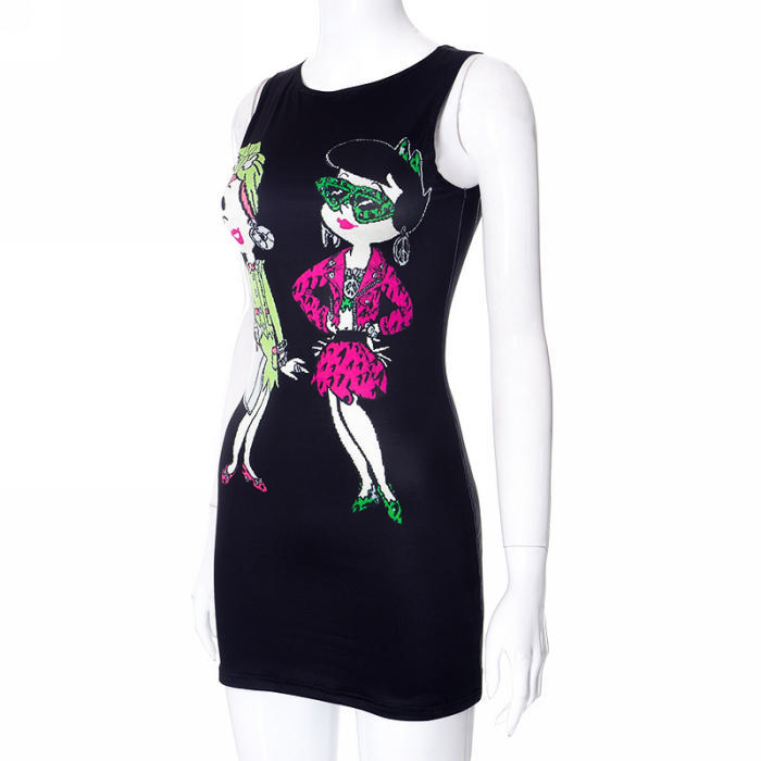(Real Image)2023 Styles Women Sexy&Fashion Spring&Summer TikTok&Instagram Styles Print Black Mini DressSKU: #CF47503-1