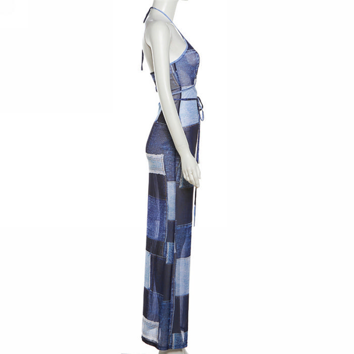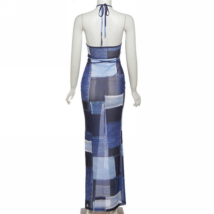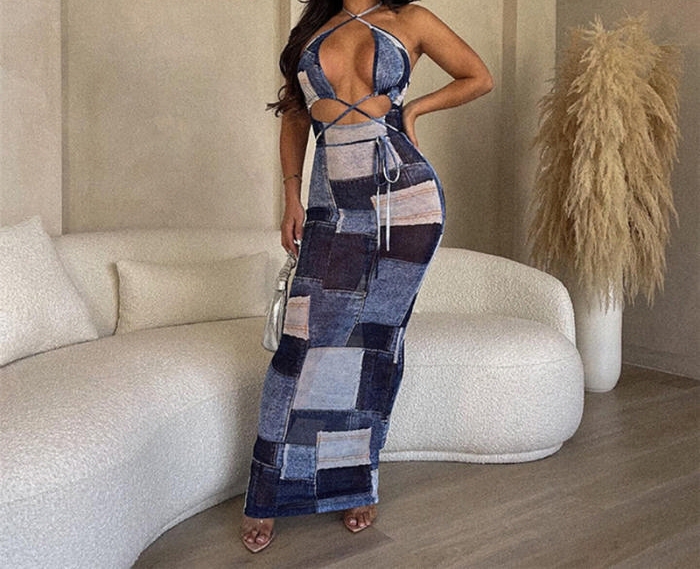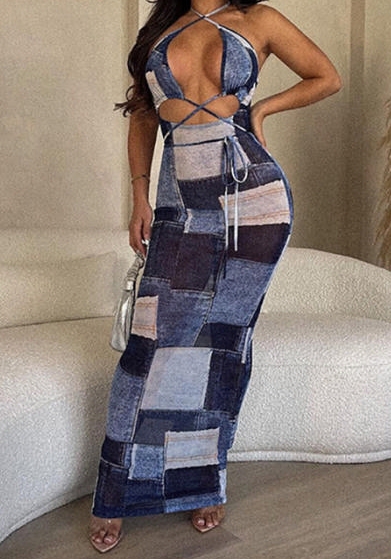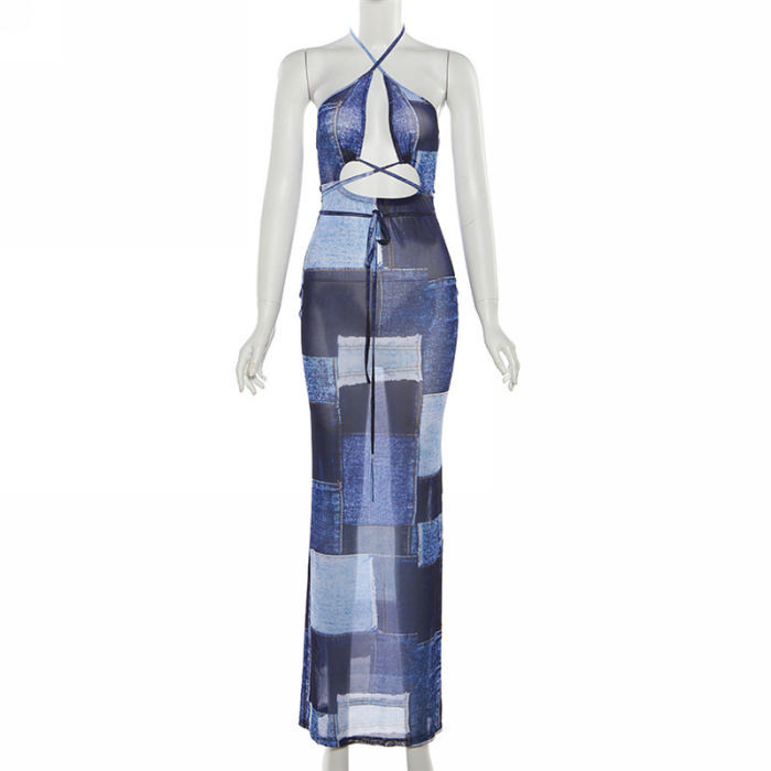 (Real Image)2023 Styles Women Sexy&Fashion Spring&Summer TikTok&Instagram Styles Print Blue Maxi DressSKU: #CF77438-1