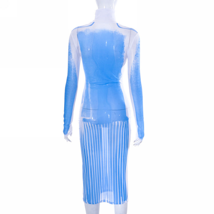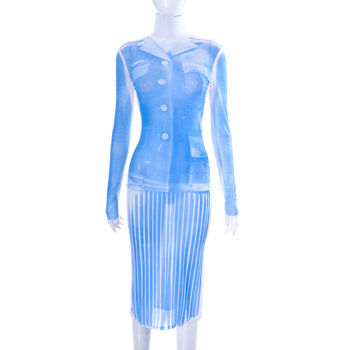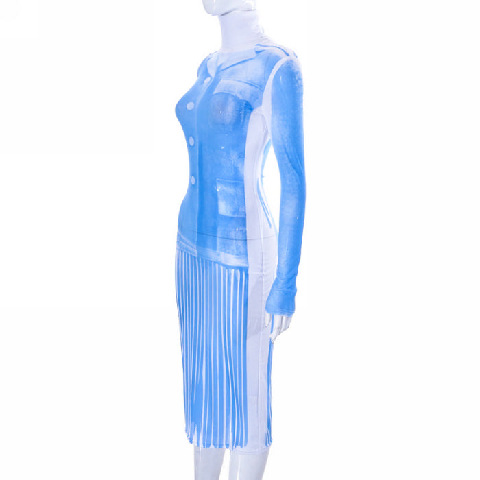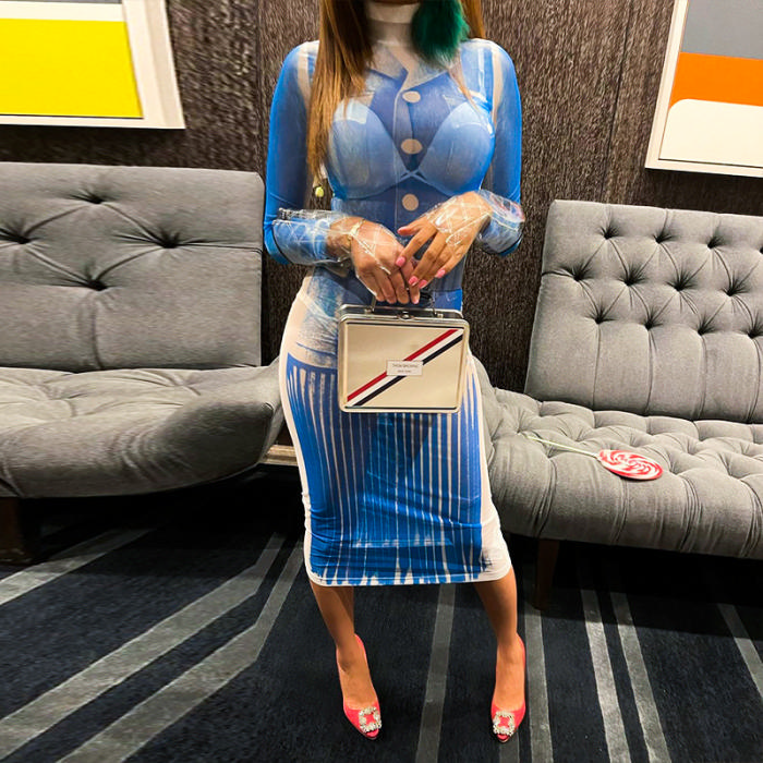 (Real Image)2023 Styles Women Sexy&Fashion Spring&Summer TikTok&Instagram Styles Print Blue Midi DressSKU: #CF80046-1