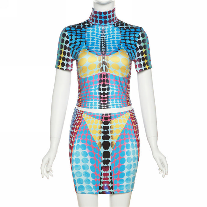 (Real Image)2023 Styles Women Sexy&Fashion Spring&Summer TikTok&Instagram Styles Print Blue Two Piece DressSKU: #CF77205-1