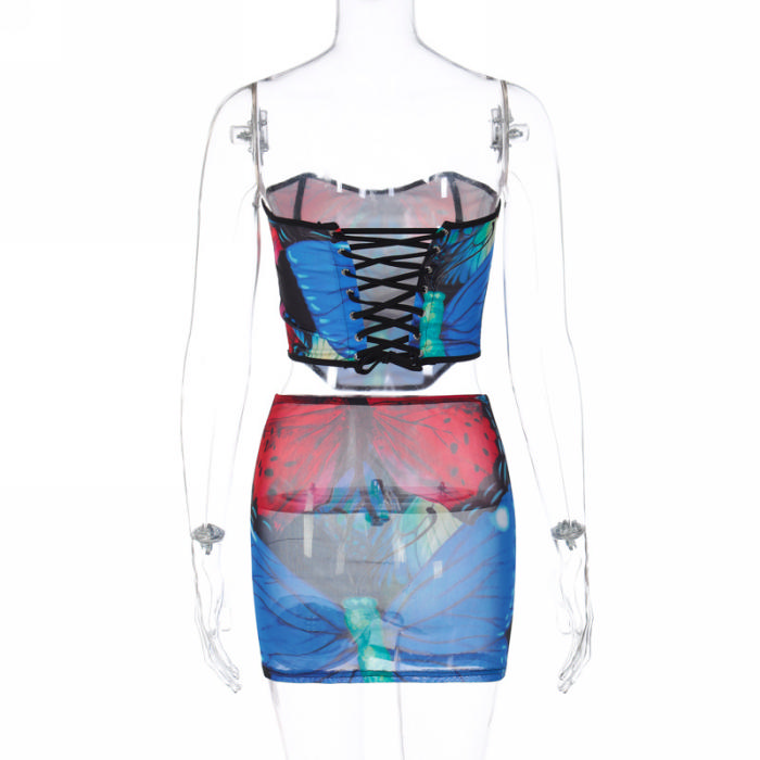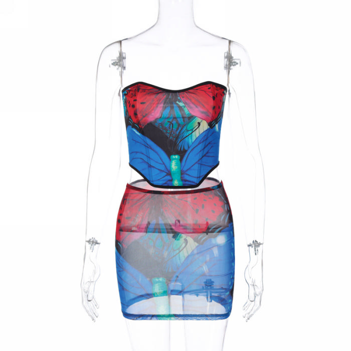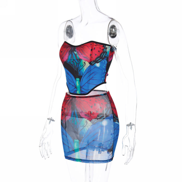 (Real Image)2023 Styles Women Sexy&Fashion Spring&Summer TikTok&Instagram Styles Print Blue Two Piece DressSKU: #CF88014-1