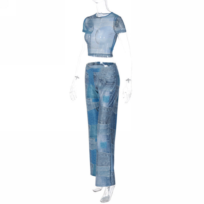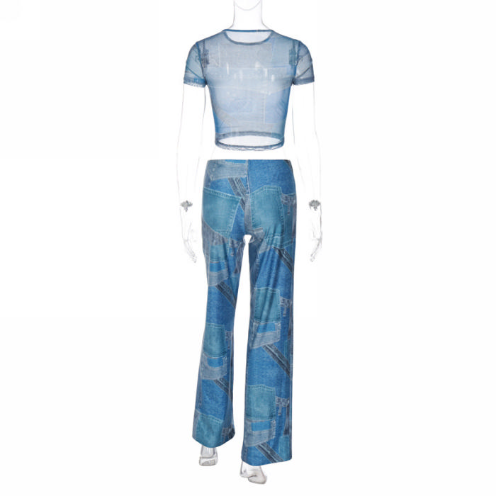 (Real Image)2023 Styles Women Sexy&Fashion Spring&Summer TikTok&Instagram Styles Print Blue Two Piece SuitSKU: #CF88053-1