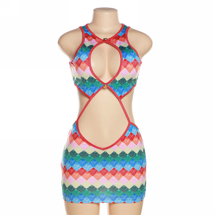 (Real Image)2023 Styles Women Sexy&Fashion Spring&Summer TikTok&Instagram Styles Print Cut Out Club DressSKU: #CF83153-1