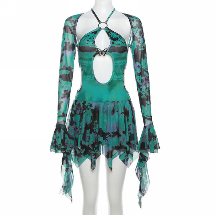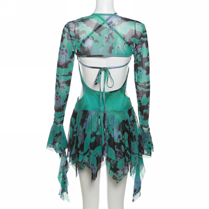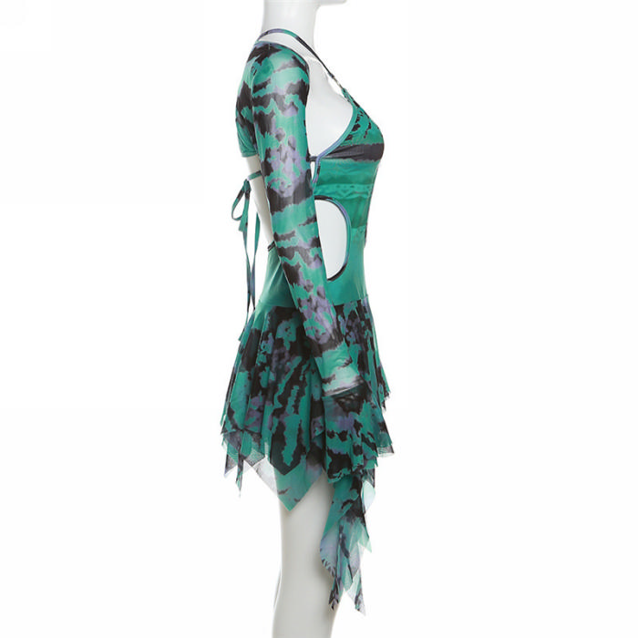 (Real Image)2023 Styles Women Sexy&Fashion Spring&Summer TikTok&Instagram Styles Print Cut Out Club DressSKU: #CF83193-1