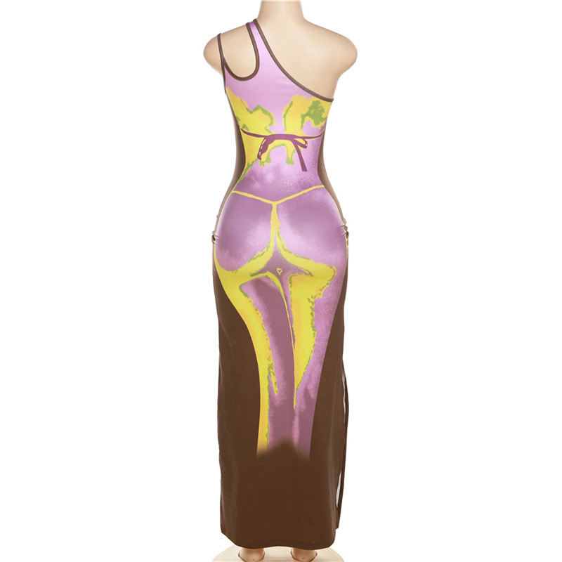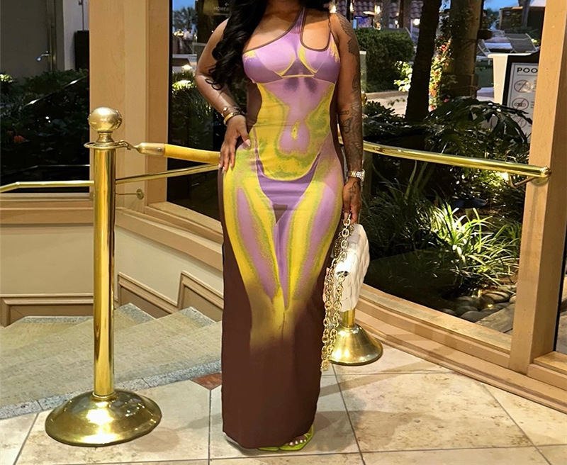 (Real Image)2023 Styles Women Sexy&Fashion Spring&Summer TikTok&Instagram Styles Print Cut Out Maxi DressSKU: #OU240-1