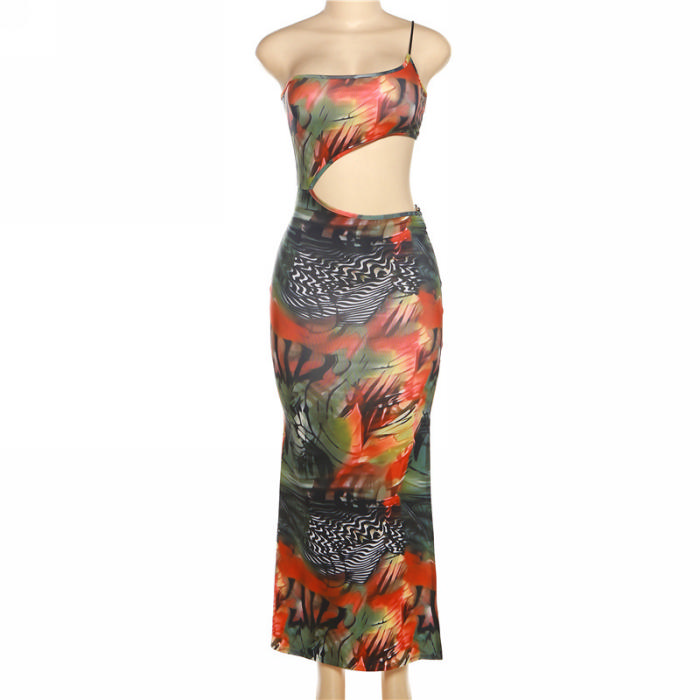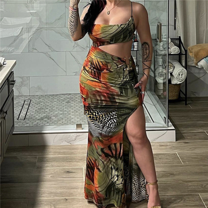 (Real Image)2023 Styles Women Sexy&Fashion Spring&Summer TikTok&Instagram Styles Print Cut Out Strap Maxi DressSKU: #CF83027-1