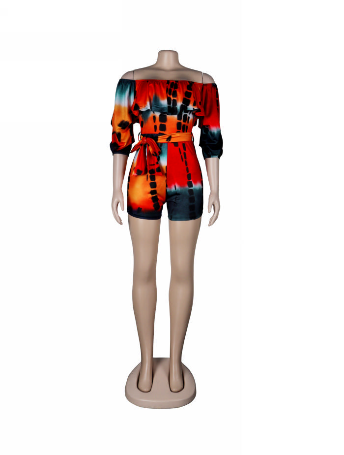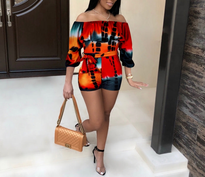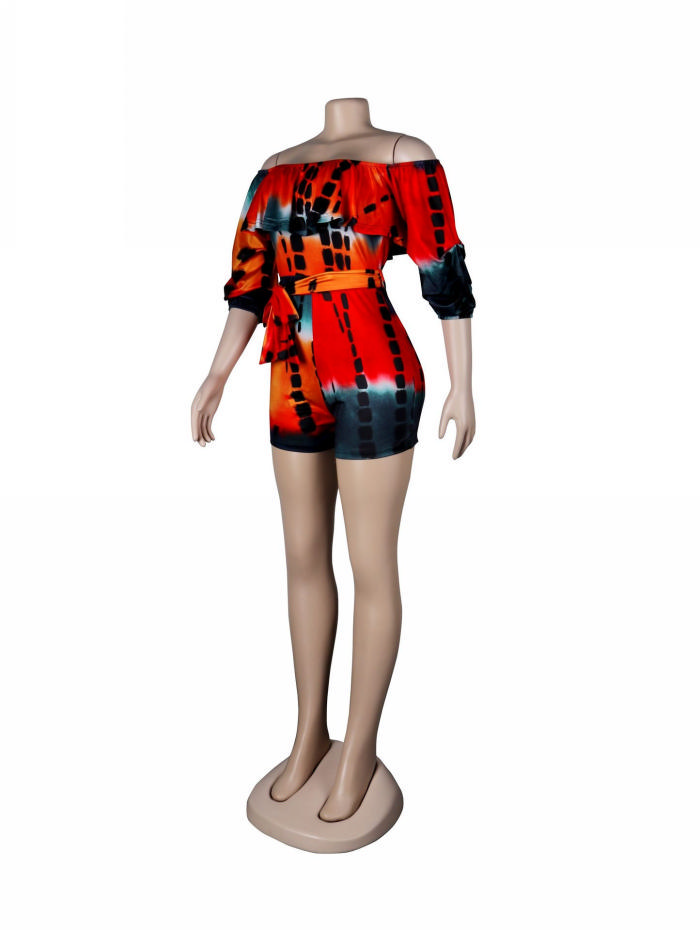 (Real Image)2023 Styles Women Sexy&Fashion Spring&Summer TikTok&Instagram Styles Print Flower Off Shoulder RomperSKU: #OEM5885-5