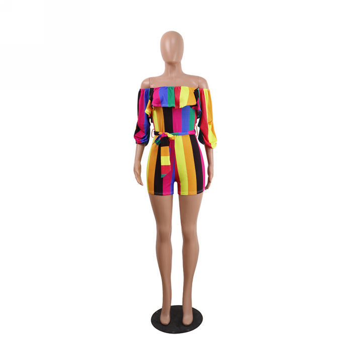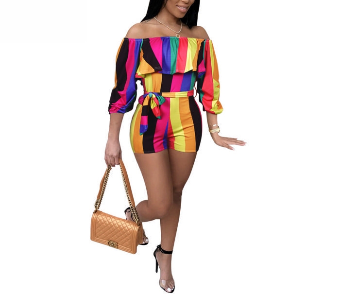 (Real Image)2023 Styles Women Sexy&Fashion Spring&Summer TikTok&Instagram Styles Print Flower Off Shoulder RomperSKU: #OEM5885-3