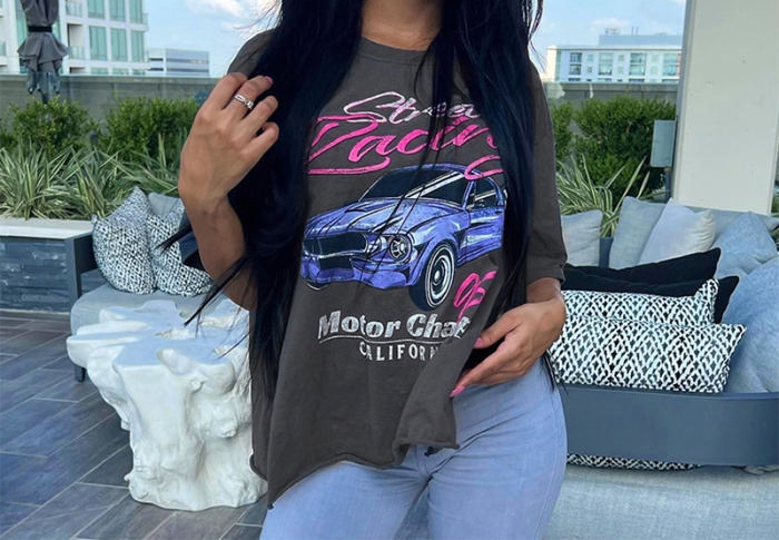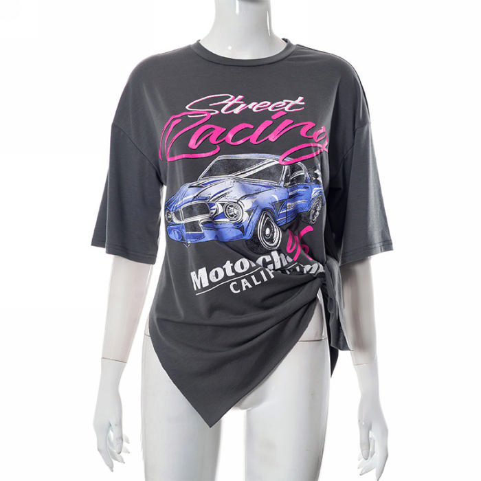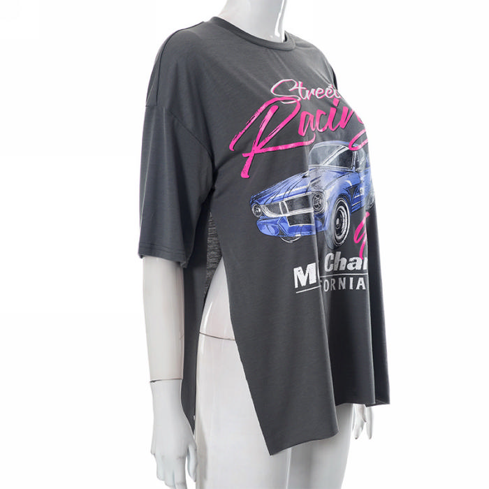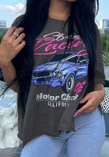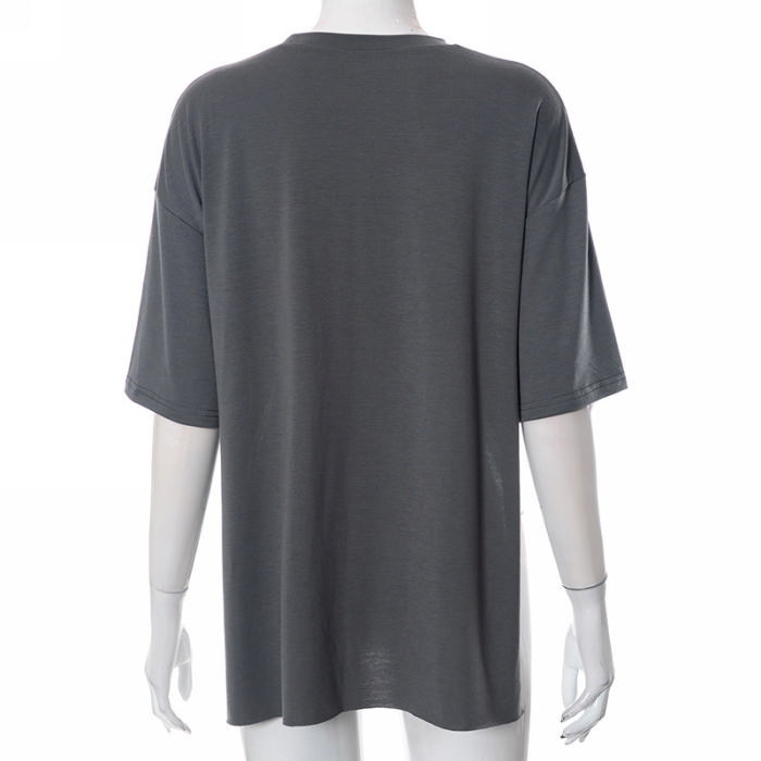 (Real Image)2023 Styles Women Sexy&Fashion Spring&Summer TikTok&Instagram Styles Print Gray TeeSKU: #CF47569-1