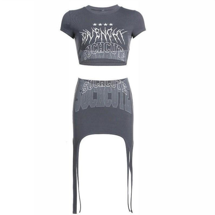 (Real Image)2023 Styles Women Sexy&Fashion Spring&Summer TikTok&Instagram Styles Print Gray Two Piece DressSKU: #OEM5872-1