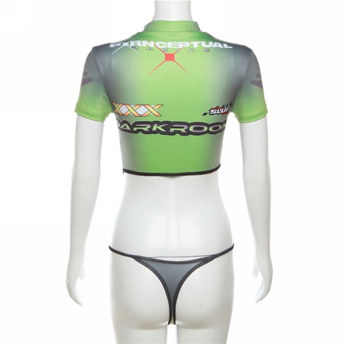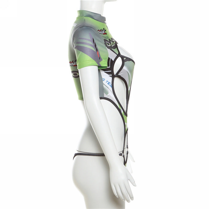 (Real Image)2023 Styles Women Sexy&Fashion Spring&Summer TikTok&Instagram Styles Print Green BodysuitSKU: #CF77501-1