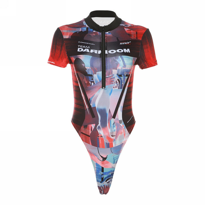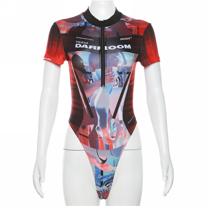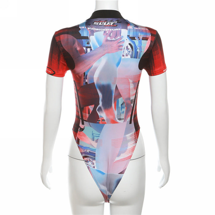 (Real Image)2023 Styles Women Sexy&Fashion Spring&Summer TikTok&Instagram Styles Print Green BodysuitSKU: #CF77501-2