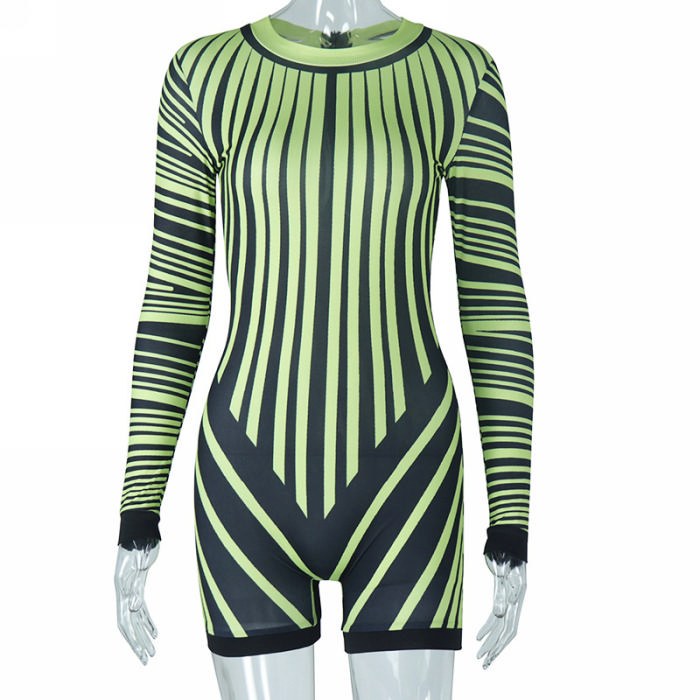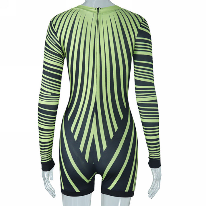 (Real Image)2023 Styles Women Sexy&Fashion Spring&Summer TikTok&Instagram Styles Print Green Long Sleeve RomperSKU: #CF67142-1