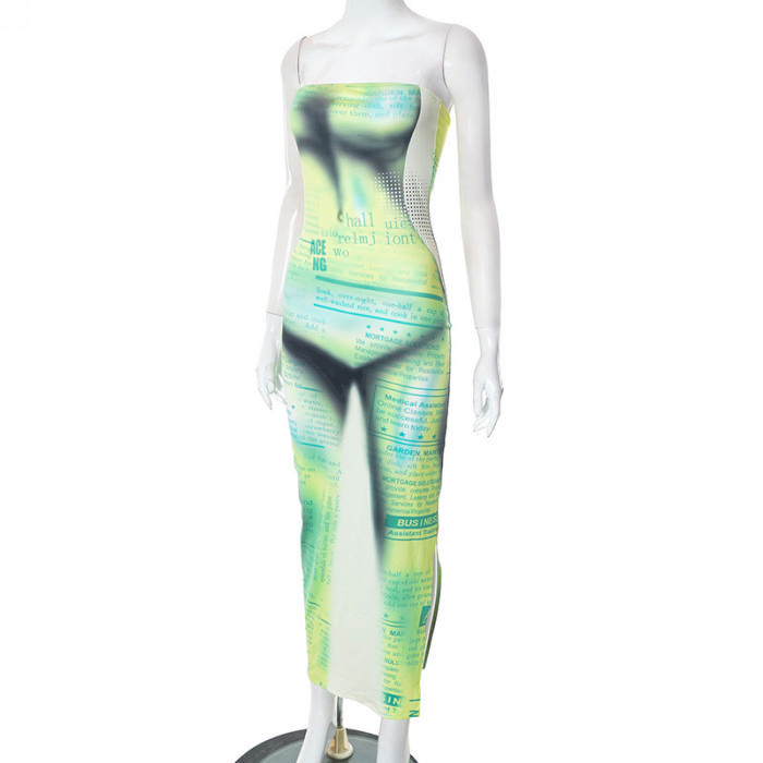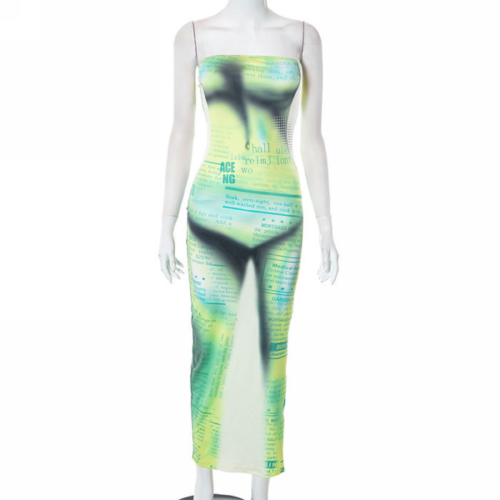 (Real Image)2023 Styles Women Sexy&Fashion Spring&Summer TikTok&Instagram Styles Print Green Tube Maxi DressSKU: #CF80074-1