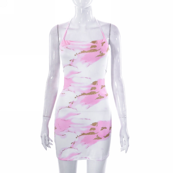 (Real Image)2023 Styles Women Sexy&Fashion Spring&Summer TikTok&Instagram Styles Print Halter Backless Mini DressSKU: #CF80039-1