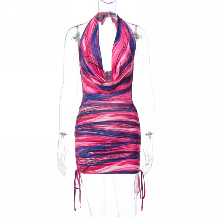 (Real Image)2023 Styles Women Sexy&Fashion Spring&Summer TikTok&Instagram Styles Print Halter Backless Mini DressSKU: #CF88009-1