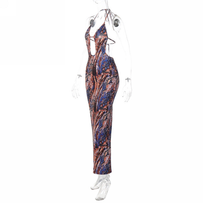 (Real Image)2023 Styles Women Sexy&Fashion Spring&Summer TikTok&Instagram Styles Print Halter Maxi DressSKU: #CF22980-1