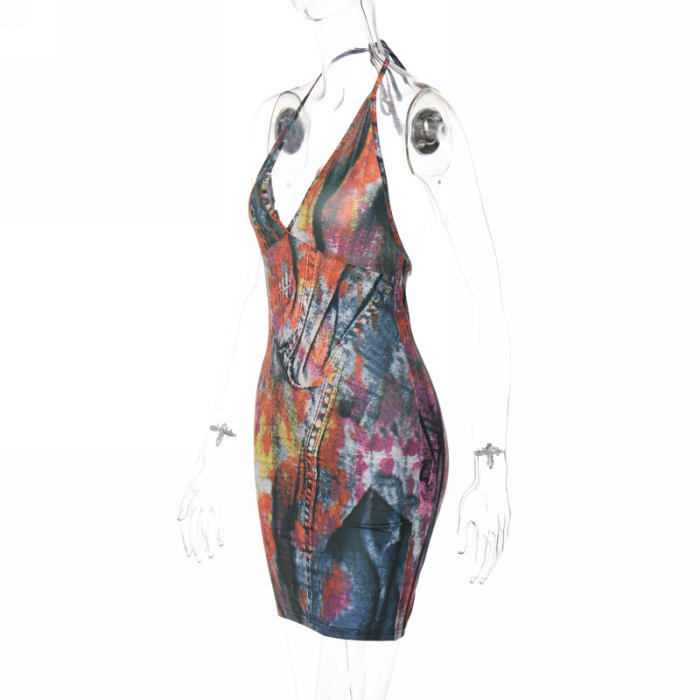 (Real Image)2023 Styles Women Sexy&Fashion Spring&Summer TikTok&Instagram Styles Print Halter Mini DressSKU: #CF22975-1