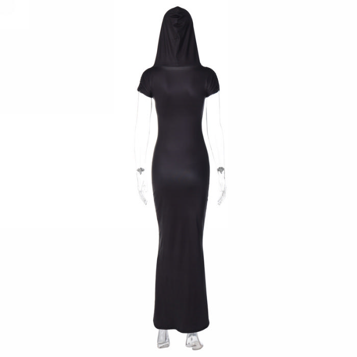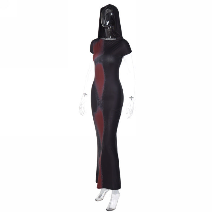 (Real Image)2023 Styles Women Sexy&Fashion Spring&Summer TikTok&Instagram Styles Print Hoodie Maxi DressSKU: #CF88077-1
