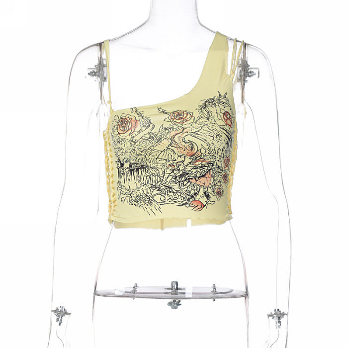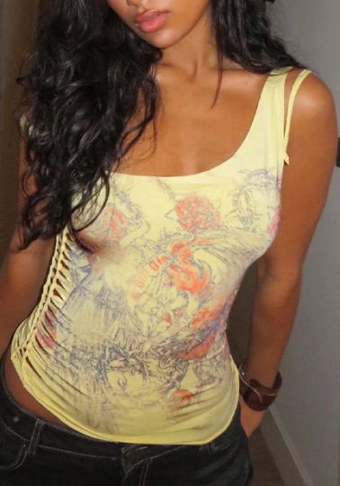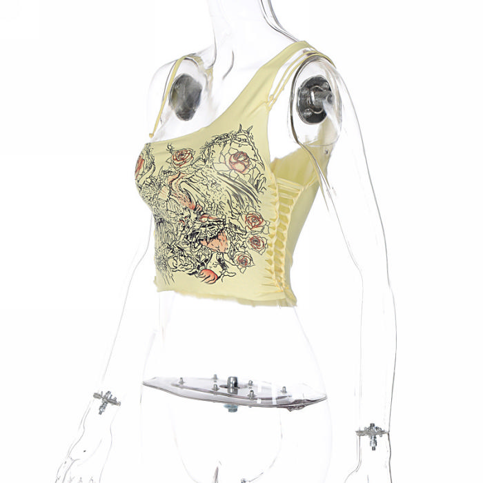 (Real Image)2023 Styles Women Sexy&Fashion Spring&Summer TikTok&Instagram Styles Print Lace Up TeeSKU: #CF38192-1