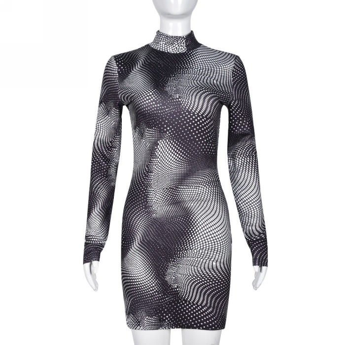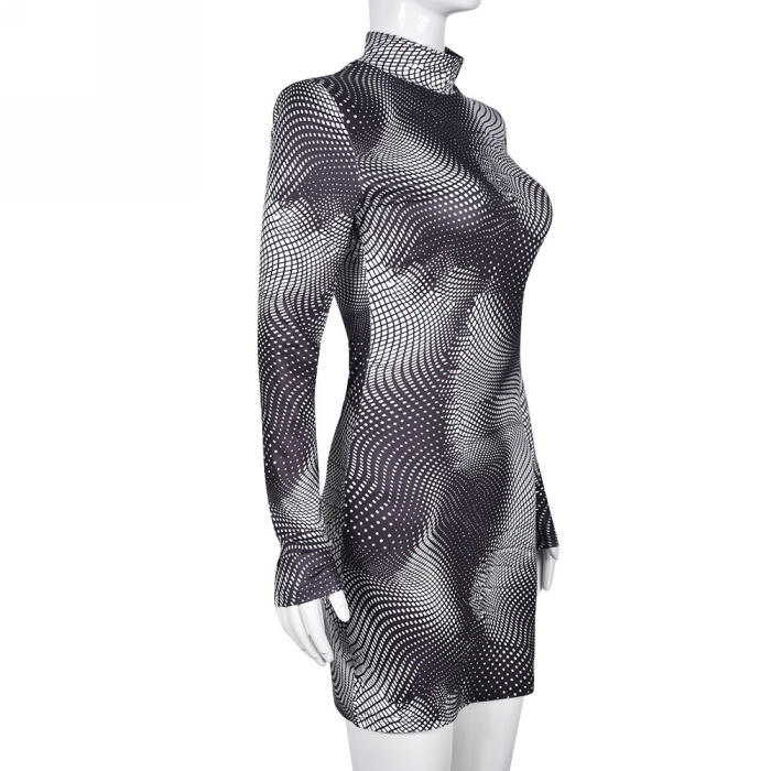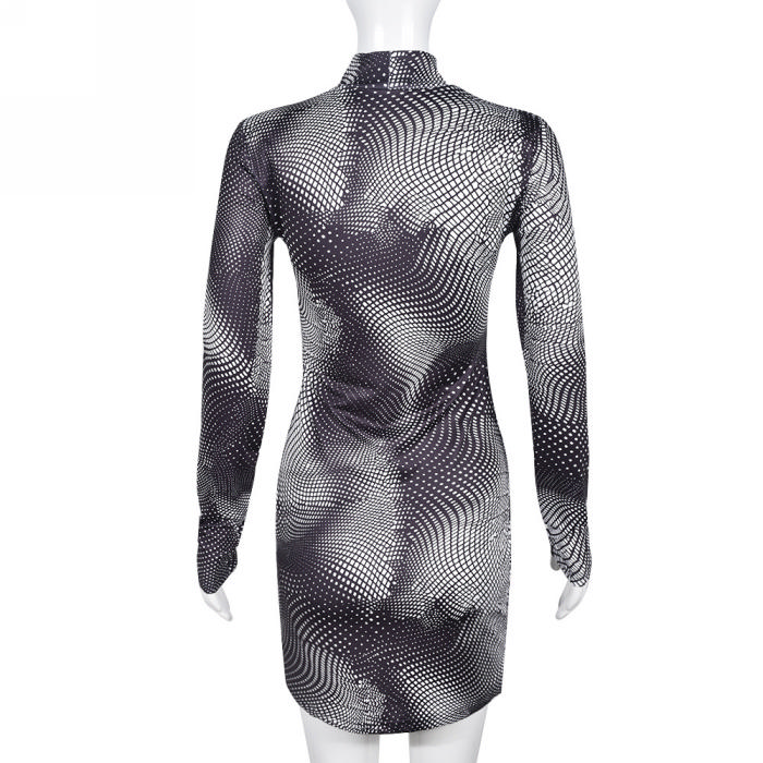 (Real Image)2023 Styles Women Sexy&Fashion Spring&Summer TikTok&Instagram Styles Print Long Sleeve Gray Mini DressSKU: #CF59555-1