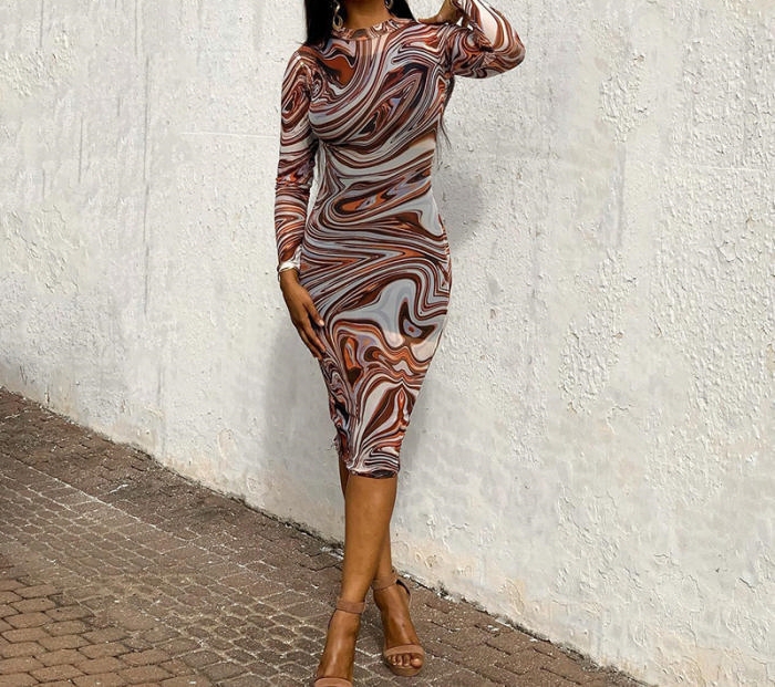 (Real Image)2023 Styles Women Sexy&Fashion Spring&Summer TikTok&Instagram Styles Print Long Sleeve Maxi DressSKU: #CF67119-1