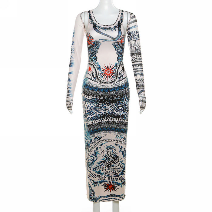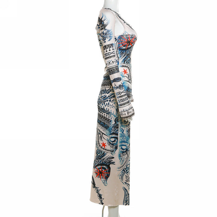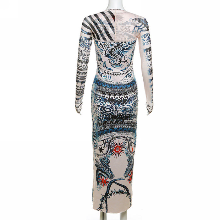 (Real Image)2023 Styles Women Sexy&Fashion Spring&Summer TikTok&Instagram Styles Print Long Sleeve Maxi DressSKU: #CF83163-1