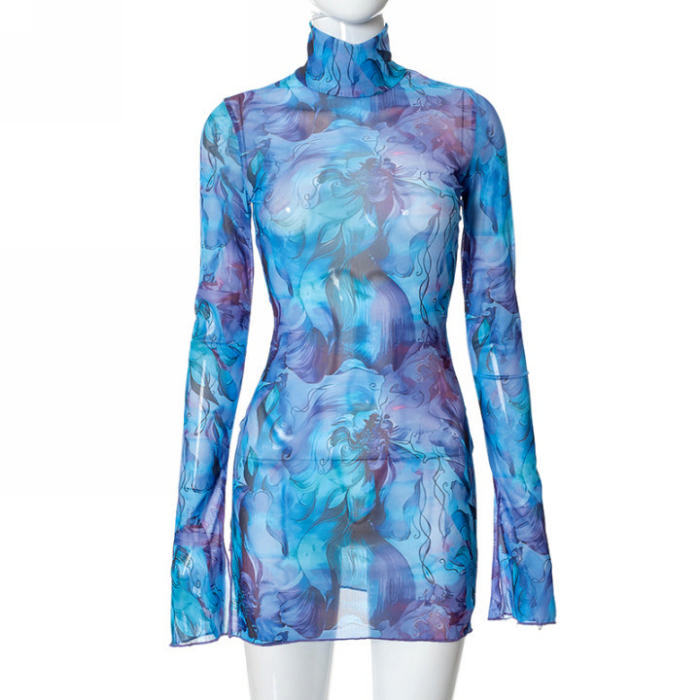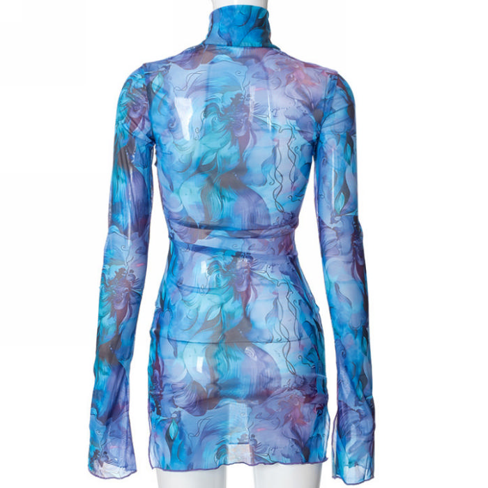 (Real Image)2023 Styles Women Sexy&Fashion Spring&Summer TikTok&Instagram Styles Print Long Sleeve Mini DressSKU: #OEM5853-4