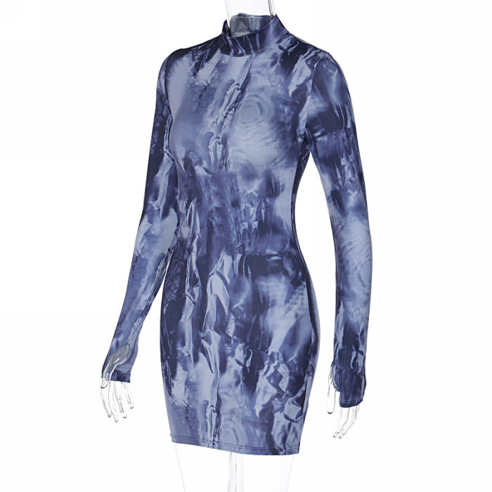 (Real Image)2023 Styles Women Sexy&Fashion Spring&Summer TikTok&Instagram Styles Print Long Sleeve Mini DressSKU: #CF88108-1