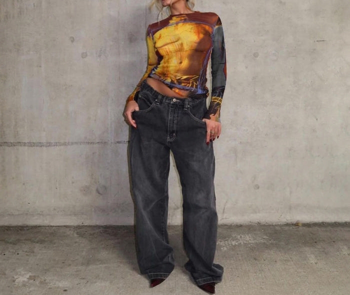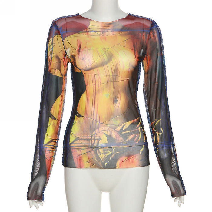 (Real Image)2023 Styles Women Sexy&Fashion Spring&Summer TikTok&Instagram Styles Print Long Sleeve TeeSKU: #CF77240-1