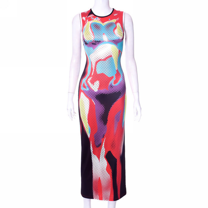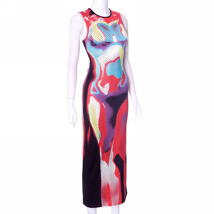 (Real Image)2023 Styles Women Sexy&Fashion Spring&Summer TikTok&Instagram Styles Print Maxi DressSKU: #CF47501-1