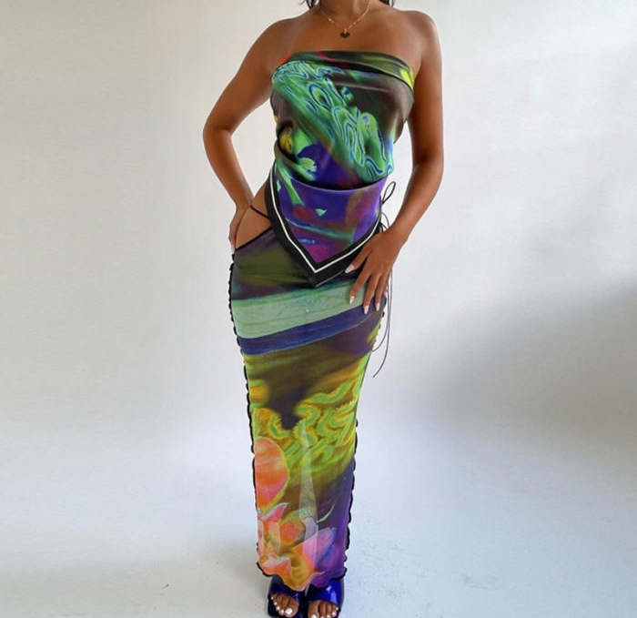 (Real Image)2023 Styles Women Sexy&Fashion Spring&Summer TikTok&Instagram Styles Print Maxi DressSKU: #CF88017-1
