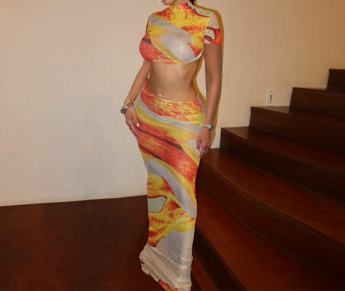 (Real Image)2023 Styles Women Sexy&Fashion Spring&Summer TikTok&Instagram Styles Print Maxi DressSKU: #CF88070-1