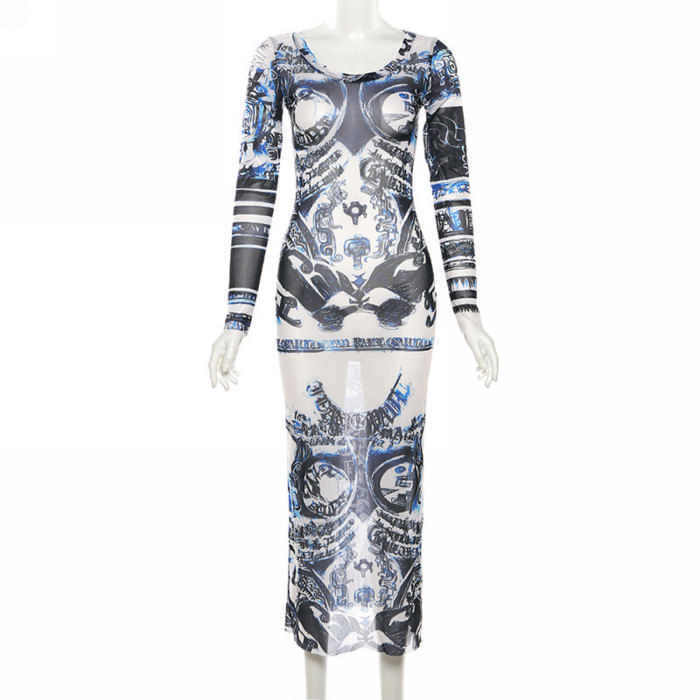 (Real Image)2023 Styles Women Sexy&Fashion Spring&Summer TikTok&Instagram Styles Print Maxi DressSKU: #CF77426-1