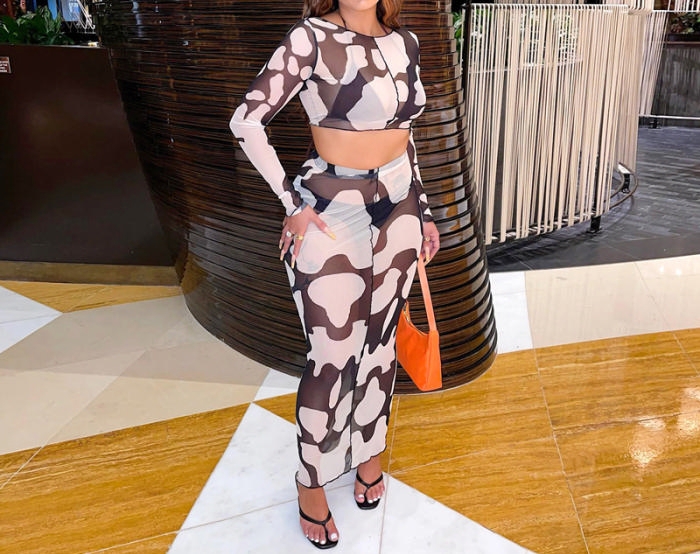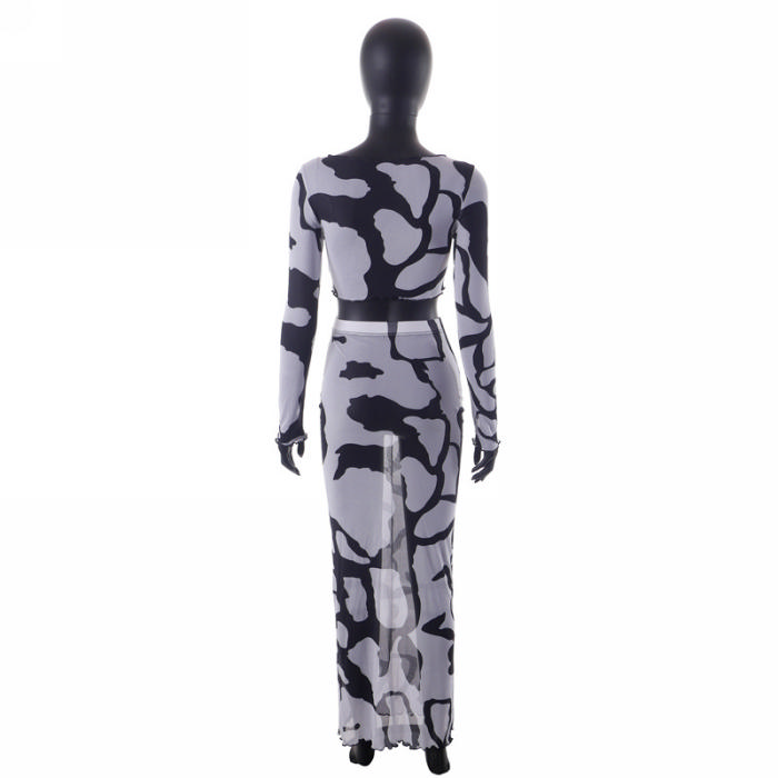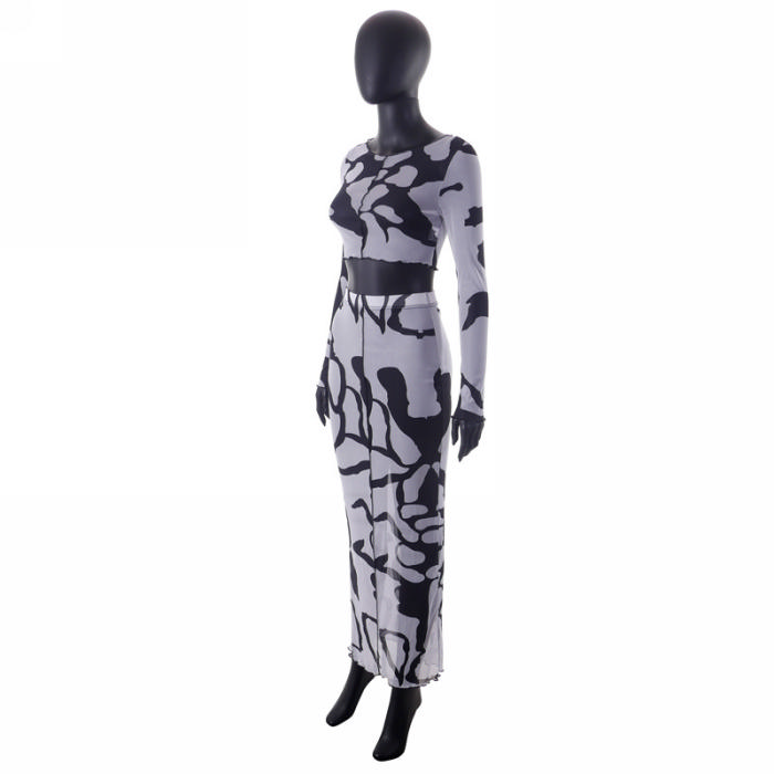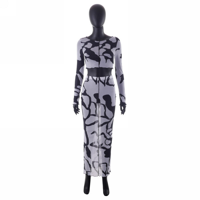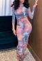 (Real Image)2023 Styles Women Sexy&Fashion Spring&Summer TikTok&Instagram Styles Print Mesh Maxi DressSKU: #CF68218-1