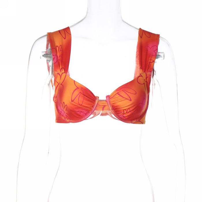 (Real Image)2023 Styles Women Sexy&Fashion Spring&Summer TikTok&Instagram Styles Print Red Bar TopsSKU: #CF38196-1