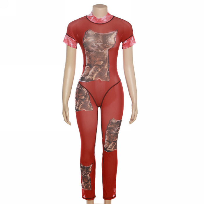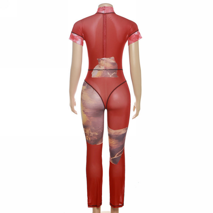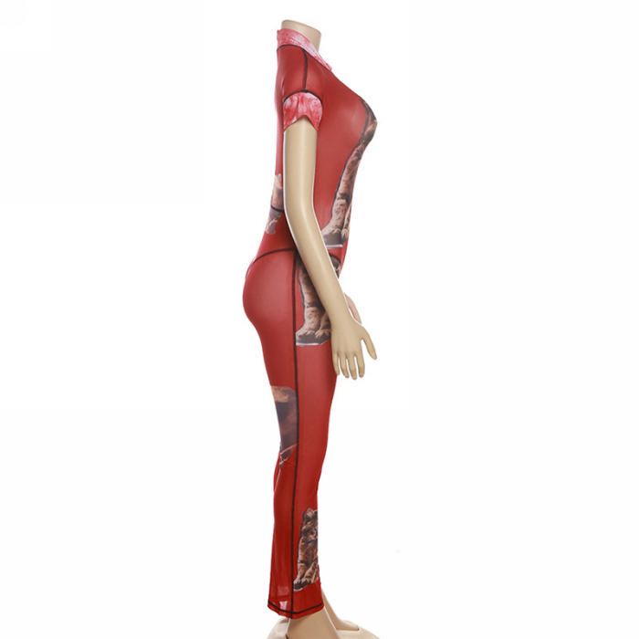 (Real Image)2023 Styles Women Sexy&Fashion Spring&Summer TikTok&Instagram Styles Print Red JumpsuitSKU: #CF77383-1