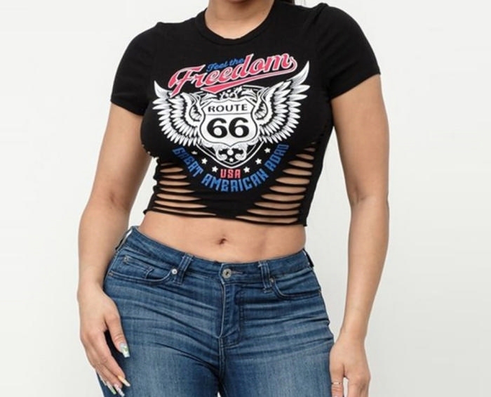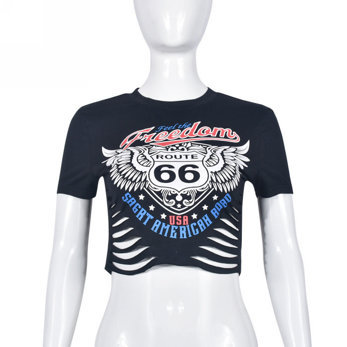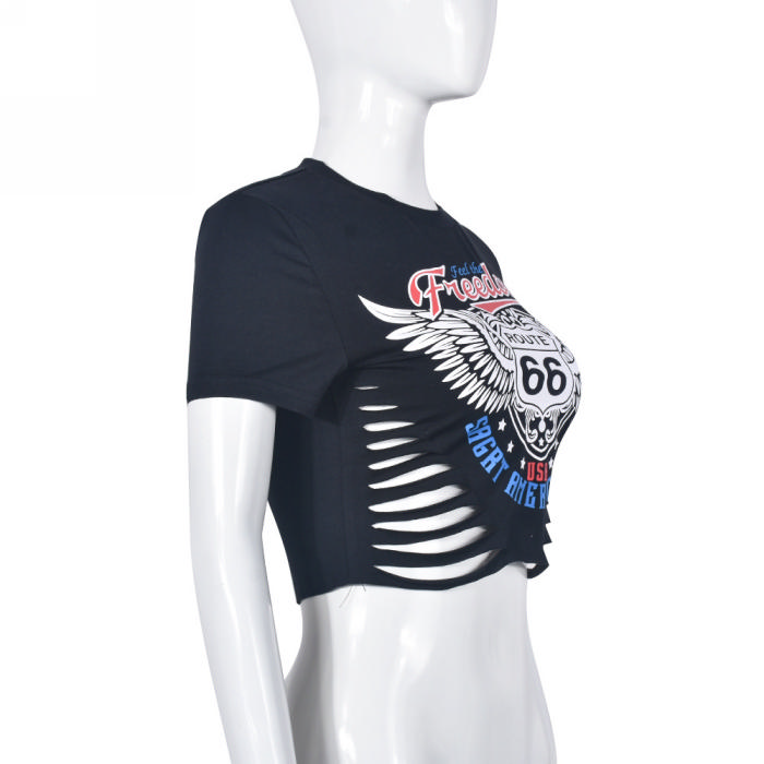 (Real Image)2023 Styles Women Sexy&Fashion Spring&Summer TikTok&Instagram Styles Print Ripped TeeSKU: #CF59558-1