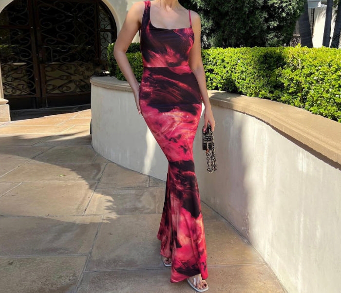 (Real Image)2023 Styles Women Sexy&Fashion Spring&Summer TikTok&Instagram Styles Print Rose Maxi DressSKU: #CF88029-1