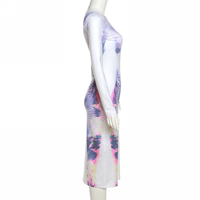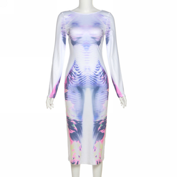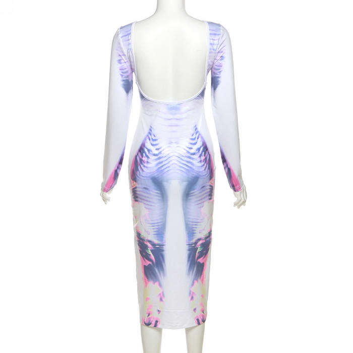 (Real Image)2023 Styles Women Sexy&Fashion Spring&Summer TikTok&Instagram Styles Print Round Neck Long Sleeve Backless Maxi DressSKU: #CF83012-1