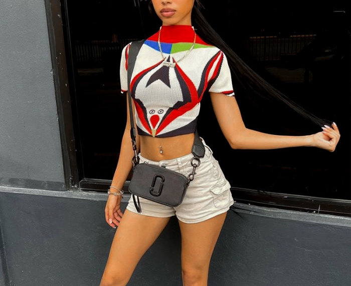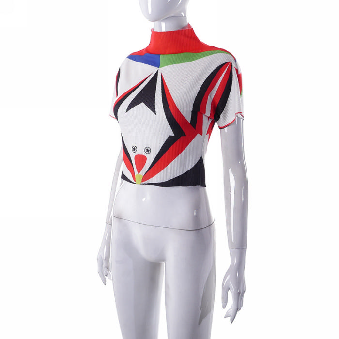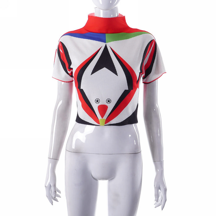 (Real Image)2023 Styles Women Sexy&Fashion Spring&Summer TikTok&Instagram Styles Print Short Sleeve TeeSKU: #CF47446-1